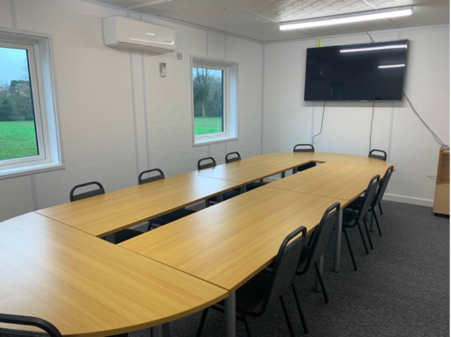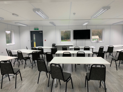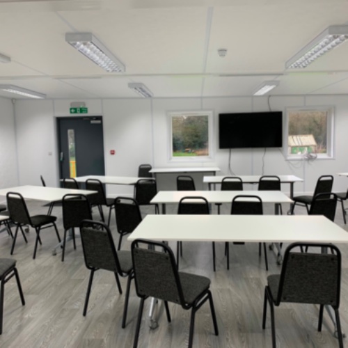 Facilities include a large training room and a smaller meeting room, with a kitchen and toilets.